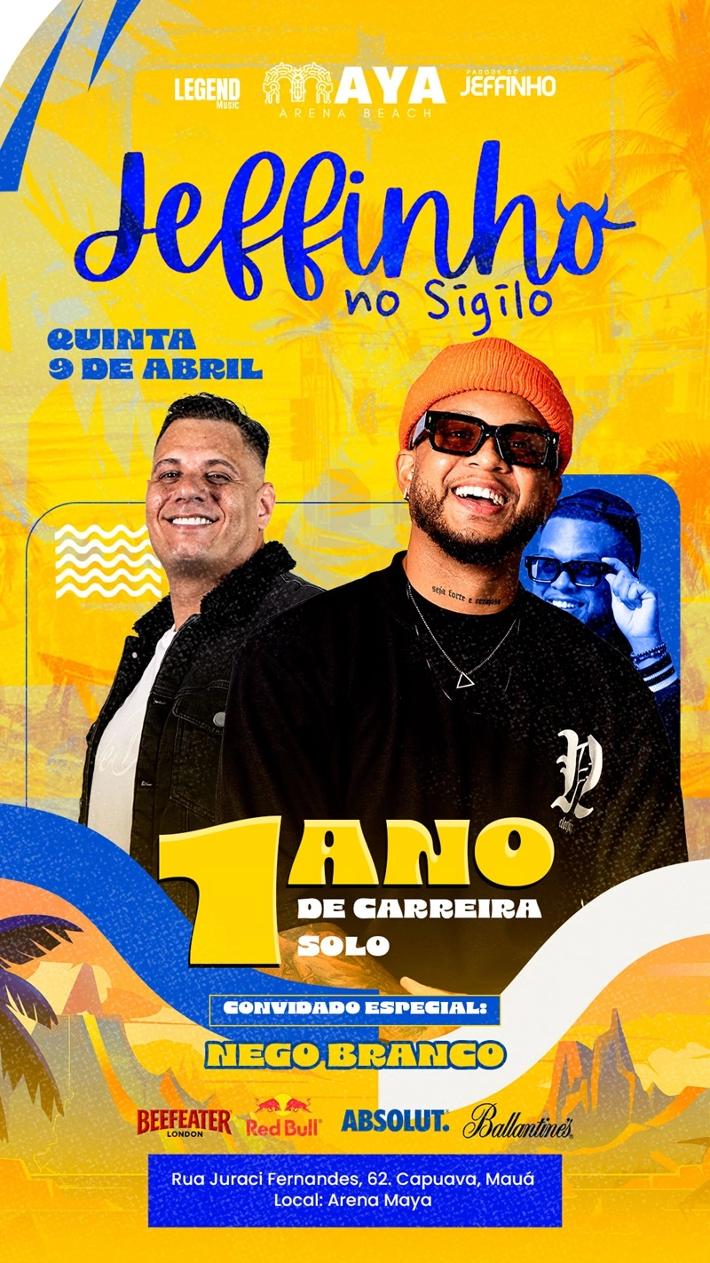 O cantor Jeffinho inicia um novo momento em sua carreira com a estreia do projeto “Jeffinho no Sigilo”, que acontece a partir do dia 09 de abril, no Arena Maya, em Mauá, no ABC paulista. Com proposta intimista e repertório livre, o projeto passa a ocupar as noites de quinta-feira, consolidando uma nova frente de proximidade entre o artista e o público.